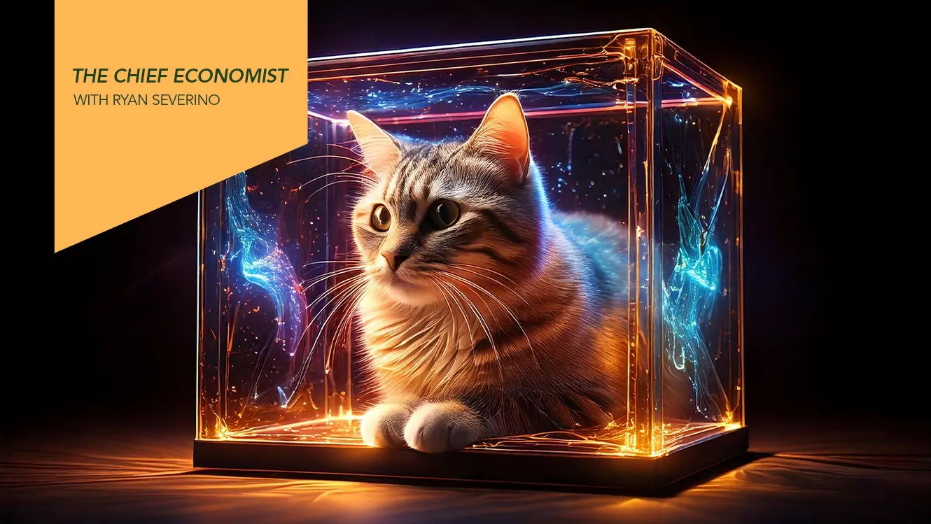 Dans cette édition au ton créatif de The Chief Economist, Ryan Severino de BGO s’inspire de la physique quantique pour illustrer le dilemme de la Réserve fédérale à la fin de 2025. À l’image du chat de Schrödinger, la Fed semble à la fois prête à baisser ses taux pour soutenir un marché du travail en perte de vitesse et réticente face à une inflation persistante. BGO prévoit une baisse de 25 points de base, en cohérence avec sa vision contrarienne maintenue tout au long de l’année. Avec des anticipations d’inflation bien ancrées et des signes de fragilité dans l’emploi, BGO estime que le principal risque réside du côté du marché du travail plutôt que de l’inflation. Une baisse des taux confirmerait ainsi ses prévisions pour une deuxième année consécutive et renforcerait sa réputation d’analyse rigoureuse et avant-gardiste.